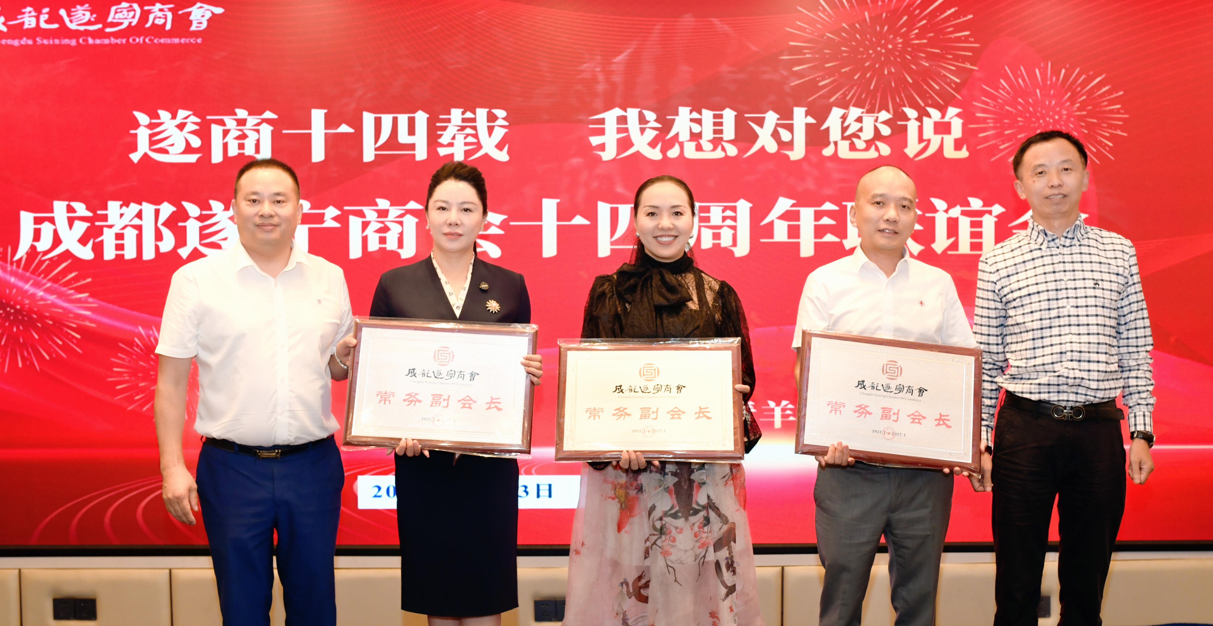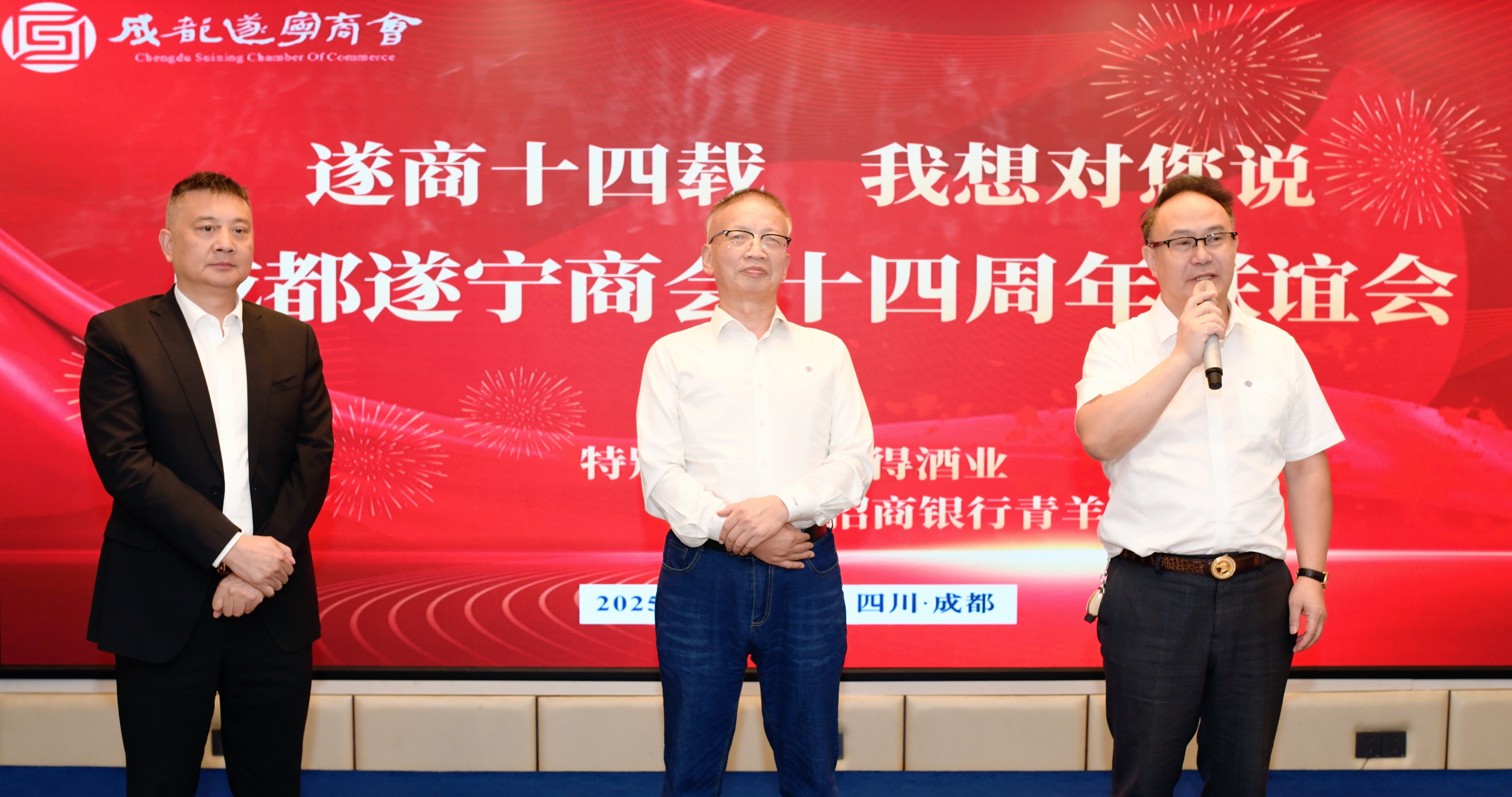 四川省工商联一级调研员王毅在讲话中对商会14周年华诞表示热烈祝贺,强调商会要强化党建引领,切实做好凝聚会员、服务会员、发展会员工作,为推动成遂两地经济社会文化协同发展贡献更大力量 。