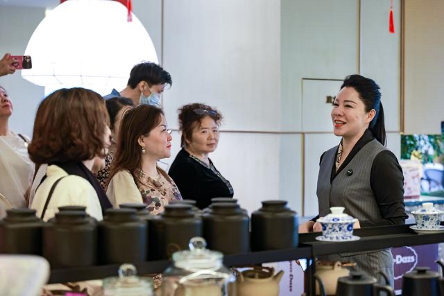代利容会长的引导下,胡利英会长一行实地参观了御府茶缘经营场所,详细了解其运营模式、服务特色与品牌文化,并对其独具匠心的环境打造和专业的服务给予了充分肯定。