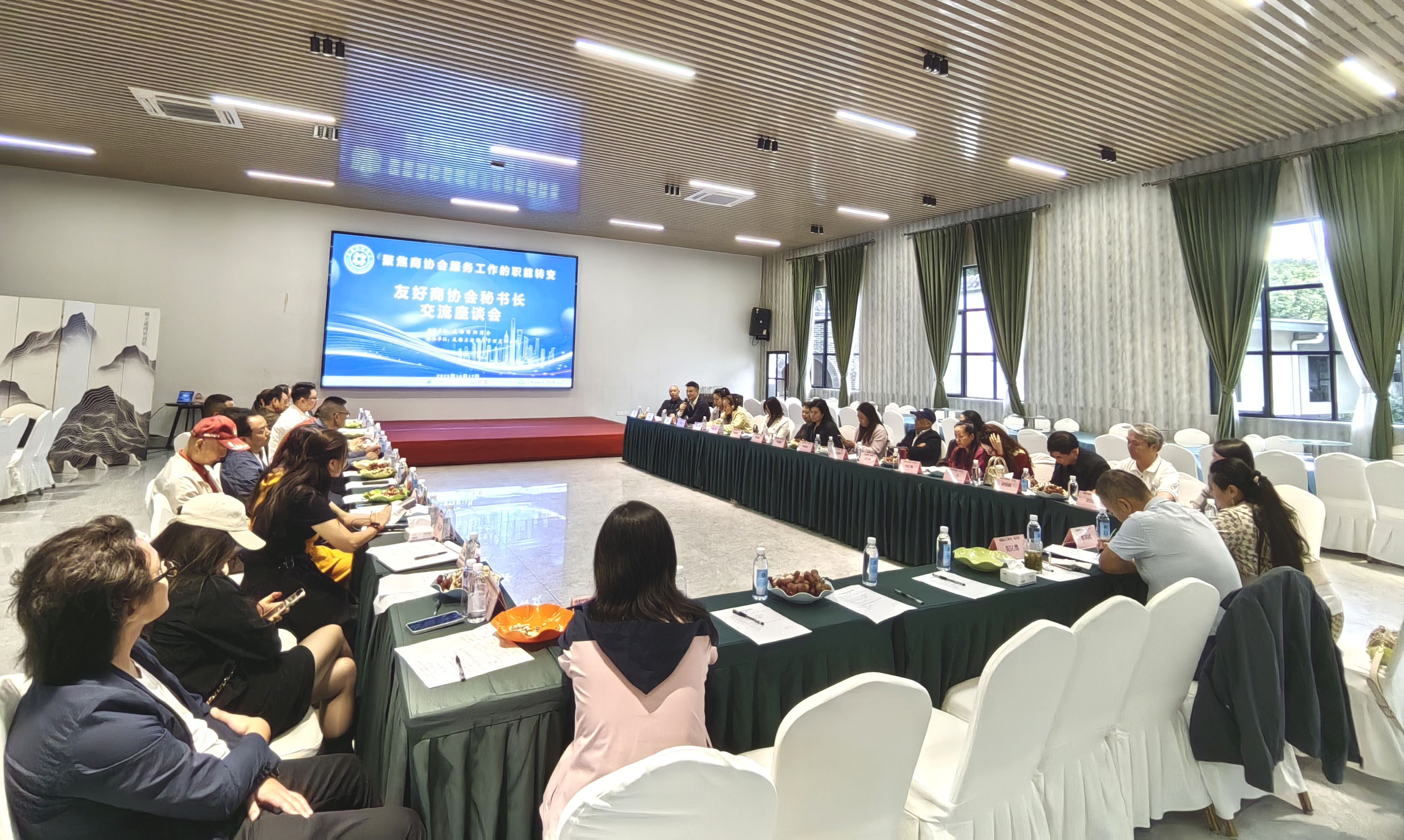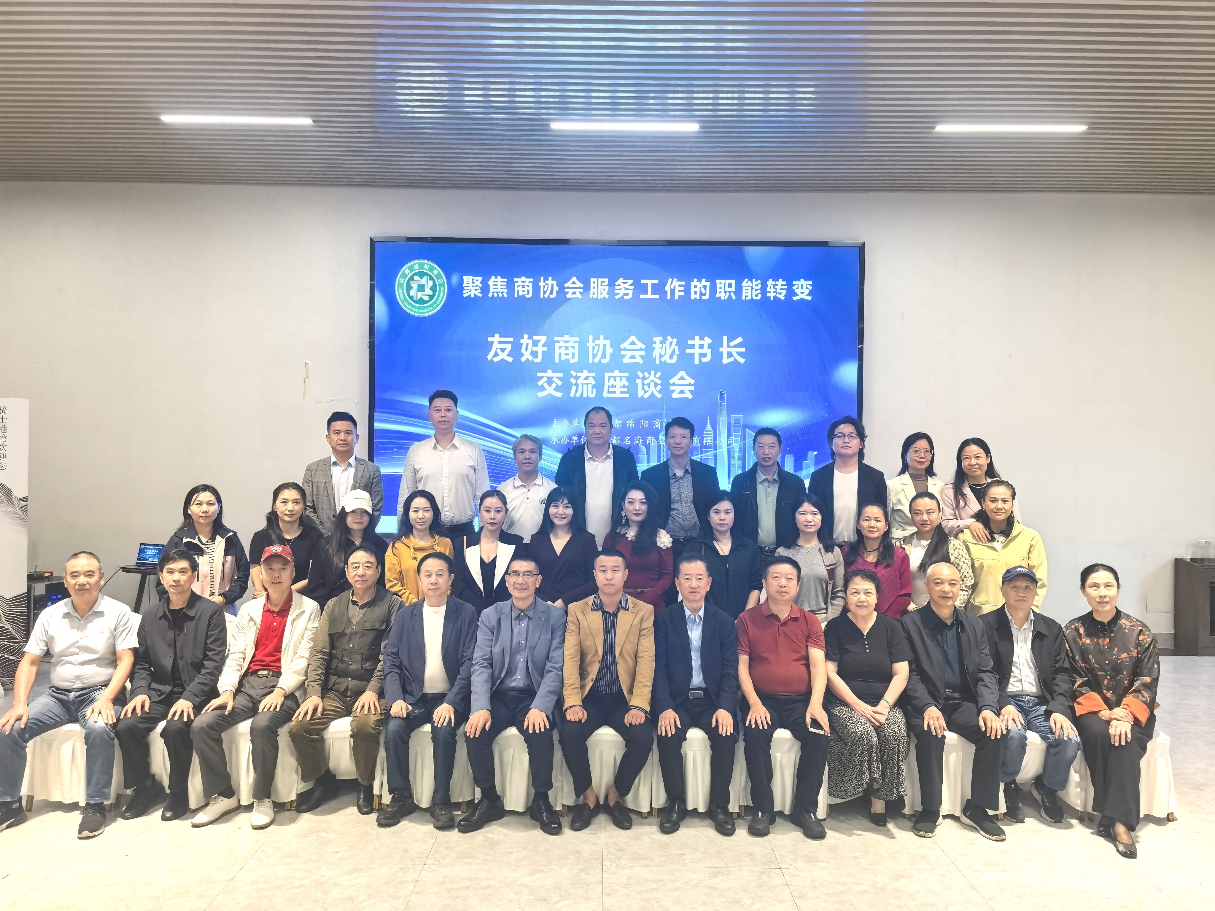 10月17日下午,由成都绵阳商会主办的'友好商协会秘书长交流座谈会'在骑士港湾生态美食庄园圆满举行。会议聚焦商协会职能转型与价值重塑,来自成都40余家友好商协会的秘书长代表参会。成都遂宁商会秘书长吕强应邀出席。