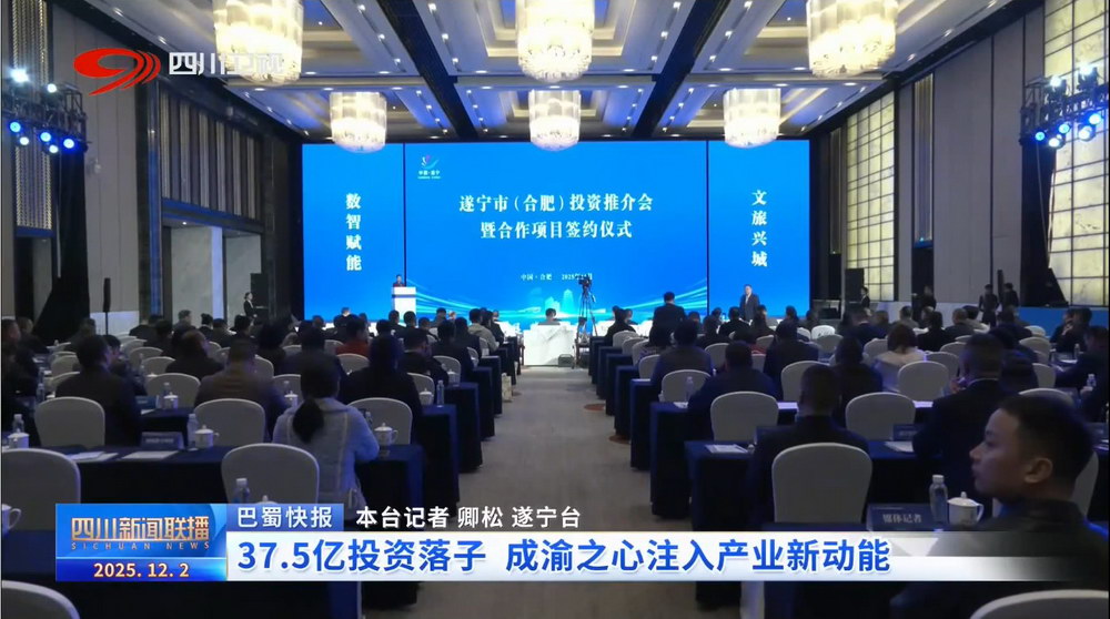 近日,遂宁市(合肥)投资推介会暨合作项目签约仪式在安徽合肥举行,80余家企业参与。现场签约区域友好合作协议4个,重点产业项目10个、投资总额37.5亿元,涉及数字经济、新能源、智慧农业等多个领域,为遂宁产业高质量发展注入新动能。