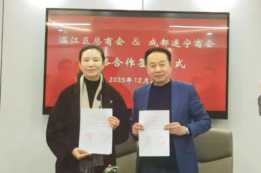 12月26日,为加强政商合作,整合各方资源,建立“共建、共享、共赢”合作机制,温江区总商会与成都遂宁商会在副会长单位成都俊峰物业管理有限责任公司举行战略合作签约仪式,缔结友好合作之约,探索政商合作新模式。