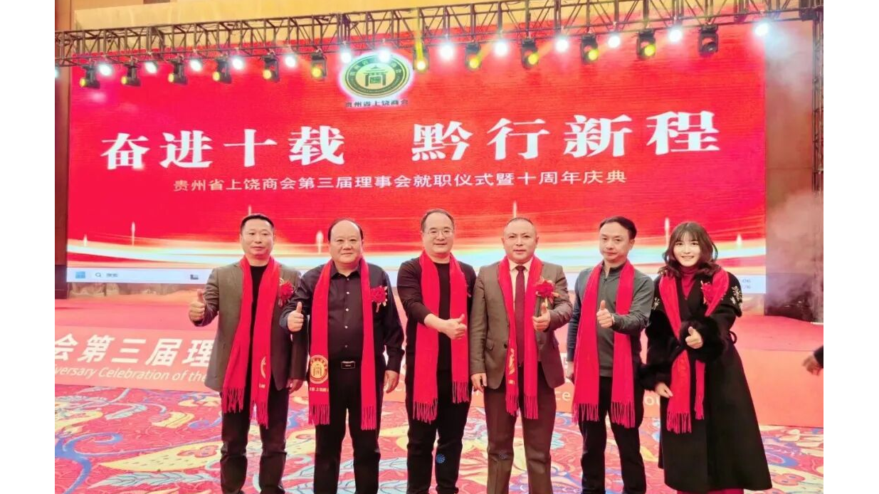 12月6日下午,以"奋进十载 黔行新程"为主题的贵州省上饶商会第三届理事会就职典礼暨十周年庆典在贵阳世纪金源大饭店隆重举行。成都上饶商会会长占梦来、执行会长史光华、执行秘书长梁群应邀出席盛会,与上饶市人大常委副主席、市工商联主席郑艳斐,贵州省工商联副主席陈广臣,饶商联合总会会长陈新等领导、嘉宾及会员代表近400人共襄盛举。新届启航,宏图再展。相信在虞露霖会长的带